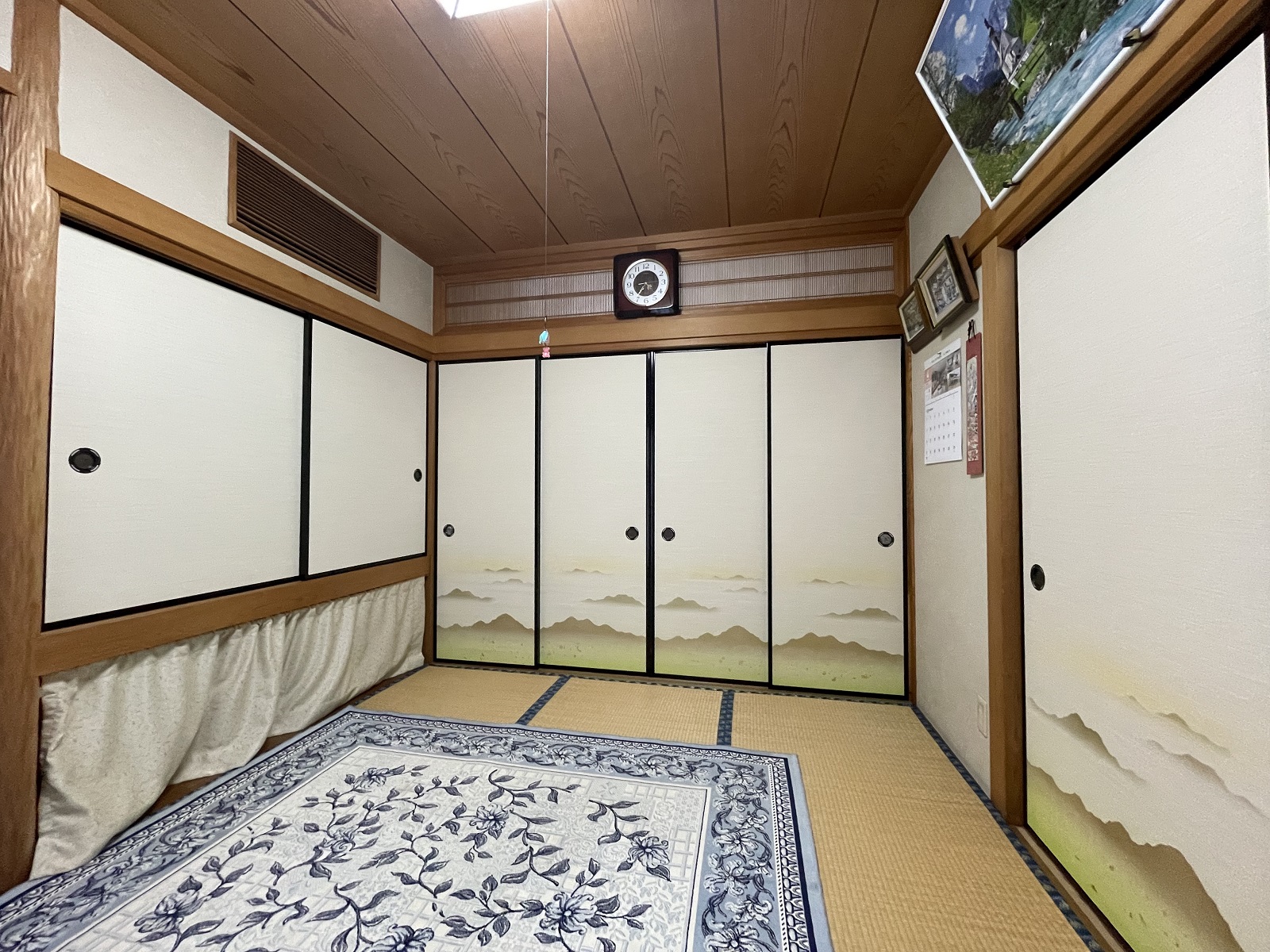二間続きの和室の襖の張り替えです。 それぞれのお部屋で襖紙の模様を変えました。 また、鴨居が下がってきて、襖が入らなかったので、ジャッキを使って襖を入れました。 ジャッキを使えば、大概の襖や障子は外せて、納められます。 鴨居に閊えて、動きが悪いようでしたら、襖や障子を削って高さ調整をすることをお勧めします。